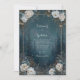 Mit dieser magischen und zauberhaften Waldeinladung laden Sie Ihre Gäste zu einer himmlischen Romantik unter einem Sternenhimmel ein. Das Design zeigt eine atemberaubende, malerische Abbildung eines tiefen Kiefernwaldes bei Dämmerung, mit einem schönen, sternigen Nachthimmel, der durch die mistigen Bäume guckt. Eine üppige, romantische Grenze aus blühenden, weißen Blüten und staubigen blauen Blättern, mit Bronzeblocken und einem Sprinkle aus magischem Goldstaub versehen, umrahmt die Szene elegant. Die tiefen aquamarinen und dunkelblauen Farbtöne des Waldes schaffen eine geheimnisvolle und romantische Atmosphäre und bieten einen atemberaubenden Rahmen für Ihre Veranstaltungsdetails in einem raffinierten, dünnen Rahmen. Dieses zauberhafte Design eignet sich perfekt für einen zauberhaften Wald, eine himmlische oder sternenförmige Hochzeit, aber auch hervorragend für eine feierliche Gala, einen Winterball oder ein Meilenstein-Jubiläum unter den Sternen. Set den Ton für eine unvergessliche Nacht der Eleganz und des Zaubers.