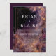 Feiern Sie Ihre Liebe unter den Sternen mit dieser zauberhaften Himmelsgarten Hochzeitseinladung. Gerahmt durch leuchtendes Laub in warmen Pflaumen, Gold und Rose, erinnert dieses traumhafte Design an den Zauber eines sternbeleuchteten Waldes. Im Mittelpunkt steht eine kosmische Leinwand von funkelnden Sternbildern, die eine faszinierende Mischung aus Natur und Nachthimmel schafft, die perfekt für ein unvergessliches Fest ist. Ideal für Hochzeiten im Abend, himmlische oder astrologisch inspiriert Themen, Herbstzeremonien oder Waldlandschaften bietet diese Einladung ein ausgeklügeltes Gleichgewicht von Eleganz und Laune. Das Mittenlayout ermöglicht personalisierte Veranstaltungsdetails, während der ätherische Rand visuelle Auswirkungen bietet, die sich sowohl zeitlos als auch modern anfühlen. Egal ob Sie eine romantische Feier im Freien, eine Sternguetersoirée oder einen märchenhaften, inspirierten Empfang veranstalten, dieses Design wird Ihnen den perfekten Set geben. Es funktioniert auch hervorragend für rett-the-date-Karten, Einladungen für eine Verlobungsfeier oder Verlängerungsankündigungen.
