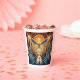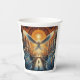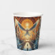 Ein atemberaubendes ski-fi-Fantasy-Kunstwerk, das ein majestätisches himmlisches Wesen mit strahlenden Flügeln darstellt, die von einem göttlichen Portal des Lichts abstammen. Die Szene ist voller faszinierender Architektur, schwimmenden Symbolen und fliegenden Tauben, die futuristische und angelikale Elemente in einer surrealen Traumlandschaft verschmelzen. Ein perfektes Design für eine Tasse, die mit jedem Schluck Fantasie und Vergnügen inspiriere!