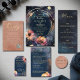 Diese Hochzeitseinladung besticht durch ein dunkles, launisches Design mit einem himmlischen Thema, das sich perfekt für das moderne Romantik eignet. Es verbindet den geheimnisvollen Reiz einer Sternennacht mit raffinierten botanischen Elementen und schafft ein Aquarellbild, das das Drama des Nachthimmels mit der Eleganz der Blumendetails in Einklang bringt. Die Einladung bietet eine raffinierte und dennoch charmante Art, den Ton für ein unvergessliches Fest Set. Es enthält echte Goldfolie für den Text und ein paar goldene Akzente.