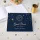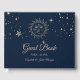 Himmelsgoldene Sonne und Mond und Sterne auf marineblau Hintergrund.