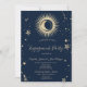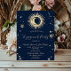 Himmelsgoldene Sonne und Mond und Sterne auf marineblau Hintergrund. Schöne Einladung, die mit Ihrem Namen angepasst werden kann. Wählen Sie die Schaltfläche "Anpassen", um Stil, Farbe und Größe des Schriftartes zu ändern.