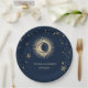 Himmelsgoldene Sonne und Mond und Sterne auf marineblau-blauem Hintergrund.