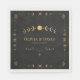 These Celestial Gothic black and gold wedding napkins feature elegant celestial accents, refined lunar symbolism, and geometric ornamentation in antique gold against a deep charcoal design.