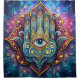 An artistic and detailed representation of the hand of Fatima, a powerful symbol of protection and good fortune, adorned with intricate designs and an all-seeing celestial eye.
