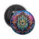 An artistic and detailed representation of the hand of Fatima, a powerful symbol of protection and good fortune, adorned with intricate designs and an all-seeing celestial eye.