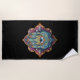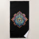 An artistic and detailed representation of the hand of Fatima, a powerful symbol of protection and good fortune, adorned with intricate designs and an all-seeing celestial eye.