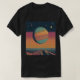 Dieses T - Shirt-Design präsentiert eine bezaubernde Landschaft, die Elemente der Science Fiction und der Ruhe miteinander verbindet. Im Vordergrund steht eine Reihe stilisierter Berge, die in warmen, erdigen Rot- und Orangetönen dargestellt sind und ein Gefühl von Tiefe und Grandeur vermitteln. Über den Bergen erstreckt sich ein riesiger Ozean in den Horizont und verschmilzt nahtlos mit dem lebendigen Sonnenuntergangshimmel. Der Sonnenuntergang zeigt einen atemberaubenden Farbverlauf, von tief orange bis rosa und lila, der in den Nachthimmel übergeht. Der Himmel zu beherrschen ist ein großer, gestreiftes Planet mit grünen, orangefarbenen und aquamarinen Tönen, das an einen Gasriesen wie Jupiter erinnert, aber mit seiner eigenen einzigartigen Drehung. Um den Planeten herum tragen funkelnde Sterne und ein kleinerer Mond zum kosmischen Gefühl bei, das ein Gefühl von Staunen und unendlichen Möglichkeiten schafft. Dieses Design ist perfekt für Weltraumfans und alle, die die Schönheit des Universums schätzen.