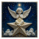 "Ein meisterhaftes Kunstwerk der Keramik, präsentiert als freistehende glasierte Porzellanskulptur, eine verzierte Hochrelief-Kachel oder ein handgemaltes Design auf einem großen Töpferschiff. Die zentrale Figur ist ein kirschengelbes Kind mit fein gemeißelten blonden Curls, geschlossenen Augen und Händen, die im Gebet eingeklammert sind und Gelassenheit ausstrahlen. Intrikierte, weiße Flügel mit Federkern verlängern sich anmutig, fertig mit subtilen Satinglasuren oder matten Verglasungen für eine lebendige Textur. Der Engel trägt ein schlichtes, blassgelbes, glänzendes Kleid mit sanften Falten, das ruhig auf einem großen, verzierten Fünf-Punkte-Stern sitzt. Der Stern ist reich verziert mit gewachsenen oder Reliefmustern, in glänzenden goldglanzfarbenen Glanzverglasungen mit möglichen Crackle-Akzenten beendet und symbolisiert göttliche Brillanz. Der Hintergrund ist mit einem tiefen Kobalt- oder Indigo-Himmel versehen, der mit goldfarbenen und weißen Sternenflecks verstreut ist und wolkenähnliche Texturen schwirbelt. Für eine Skulptur sind diese himmlischen Details Teil der Basis oder der Hintergrund. Eine göttliche Ausstrahlung wird durch hellere Glanzlichter, die vom oberen Punkt des Sterns ausgehen, suggeriert, wodurch ein Gefühl der Beleuchtung entsteht. Eingebettet in klassische und Jugendstil-Traditionen, ist dieses Werk ein Beispiel für die künstlerische Gestaltung von gebrannten Keramiken - mit dem Schwerpunkt auf aufwändiger Skulptur, raffinierter Verglasung und einer himmlischen Atmosphäre."