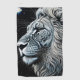 Ai-Kunst, die einen schwarz-weißen Löwen auf einem mystischen Abend mit sternendem Hintergrund darstellt.