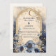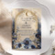 Ein luxuriöses Hochzeitsdesign im himmlischen Stil mit einem blühenden Mitternachtsgarten, glänzenden Goldakzenten und einem goldenen Halbmond, der von einem verzierten Bogen gerahmt ist. Ideal für Paare, die eine romantische, mystische und am Abend inspiriert Feier mit eleganten kosmischen Details suchen.