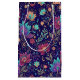 Embark on a mystical journey with this enchanting midnight-blue gift bag. Featuring intricate, vibrant flowers in jewel tones of teal, magenta, and amber, this design is woven together with celestial elements like golden crescent moons and twinkling stars. This magical, boho-inspired pattern is a perfect choice for birthdays, spiritual celebrations, or anyone who loves a touch of cosmic whimsy.