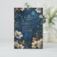 This enchanting celestial wedding design blends a deep midnight sky with glowing golden stars, soft moonlight, and richly detailed florals for a strikingly romantic aesthetic. The painted night sky creates a magical atmosphere, while the gold botanical accents add luxurious warmth and depth. Perfect for couples seeking an elegant celestial theme with a touch of whimsy and artful sophistication.