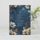 This enchanting celestial wedding design blends a deep midnight sky with glowing golden stars, soft moonlight, and richly detailed florals for a strikingly romantic aesthetic. The painted night sky creates a magical atmosphere, while the gold botanical accents add luxurious warmth and depth. Perfect for couples seeking an elegant celestial theme with a touch of whimsy and artful sophistication.