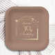 Mocha Mousse Gold Sun Moon Astronomie 30. Geburtstag Papier Teller mit einer eleganten goldenen Sonne, Mond und Sternen mit einem goldenen Rahmen auf einem mochaotischen Hintergrund. Im Inneren finden Sie Ihre persönlichen Informationen zum dreißigsten Geburtstag. Personalisieren Sie den Text in den Textfeldern, indem Sie ihn bearbeiten. Für Sie entworfen von Evco Studio www.zazzle.com/store/evcostudio