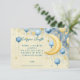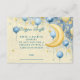 Ein traumhaftes Aquarelldesign mit leuchtendem Halbmond, umgeben von hängenden Sternen, flauschigen Wolken und festlichen Ballons in sanften Blau- und Goldtönen. Ideal für eine zauberhafte und himmlisch inspirierte Babydusche.