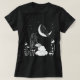 T - Shirt mit einer mystischen Szene mit zwei Göttinnen, eine stehend zwischen großen Pilzen und Pflanze, und eine andere sitzend auf einem Halbmond. Dieses zauberhafte und himmlische Design verkörpert das Wesen der Natur, Mystik und Schönheit des Himmels