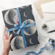 Elegant moon phase and celestial pattern wrapping paper featuring crescent moons, stars, and radiant lunar details on a dark background. Ideal for astrology lovers, moon enthusiasts, spiritual seekers, stargazers, and fans of mystical celestial style.