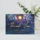 Celestial Moon Phase Dankeschön Karte. Ein großartiges nach der Hochzeit danke Ihnen, dass Sie auf der Vorderseite anpassen können und schreiben Sie eine herzliche Nachricht an Ihre Gäste auf der Rückseite. Diese Karte zeigt einen lila und blauen Nachthimmel der Galaxie auf der Vorderseite, gefolgt von einer glühenden Mondphase. Die Rückseite ist weiß und zeigt eine galaxisch farbene Mondphase über weiß und ist, wo Sie eine Notiz schreiben.