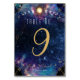 Himmelsmond-Phase-Tischnummer-Karten. Ändern Sie einfach die Nummer aus und haben Sie einige phantastische metaphysische Tischnummer Karten für Ihre Hochzeit. Die Karten verfügen oben über eine glühende Mondphase und einen blauen und lila Nachthimmel-Hintergrund. Goldverzierungen schmücken die Kanten. Die passenden Produkte sind in unserem Geschäft mit diesem Design.