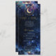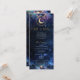 Das Celestial Moon Phase Wedding Program zeigt einen atemberaubenden, blauen und lila Galaxiehintergrund, der mit einem goldhalbmondförmigen Mond geschmückt ist, der jeden ersten Moment einnimmt. Mit eleganten metaphysischen Verzierungen umfasst diese verzaubernde Karte alle Mondphasen und Elemente. Es präsentiert wunderschön alle Details Ihrer Hochzeitsfeier und führt Ihre Gäste durch jeden magischen Moment.