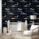 Luxuriöse Tapete mit goldenem Mond, Sternen und Wolken auf einem dunkelblauen Hintergrund