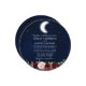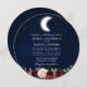 Feierliche Hochzeitsrunde Einladung. Wasserfarbener Nachthimmel mit Sternen und dem Mond. Watercolor Burgundy Blue Pink Floral. Eukalyptus-Blätter im Grünen.