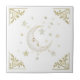 "gold and white delft", "celestial moon ceramic tile", "historic antique vintage stars", "astrology folk mythological art", "medieval lunar astrological mythology", "mystical mystic corner flourish", "occult masculine feminine decorative", "monochromatic la luna evening", "traditional cosmic star duality", "classic space night sky stars"