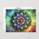 Celestial Neon Mandala mit lebendiger Abstrakter Postkarte