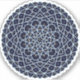 Ein spitz-artiges kreisförmiges Mandala in hellblau mit leuchtend blauen und goldfarbenen sternähnlichen Punkten, die zwischen den Schichten verstreut sind, sorgt für einen Spaß, ein Design, das an einen sternenförmigen Nachthimmel erinnert.
