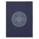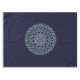 Ein spitz-artiges kreisförmiges Mandala in hellblau mit leuchtend blauen und goldfarbenen sternähnlichen Punkten, die zwischen den Schichten verstreut sind, sorgt für einen Spaß, ein Design, das an einen sternenförmigen Nachthimmel erinnert.