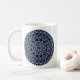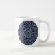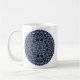 Ein spitz-artiges kreisförmiges Mandala in hellblau mit leuchtend blauen und goldfarbenen sternähnlichen Punkten, die zwischen den Schichten verstreut sind, sorgt für einen Spaß, ein Design, das an einen sternenförmigen Nachthimmel erinnert. Weitere Tasse und Stile sind erhältlich, wie z.B. Reisebügel und Steine.