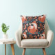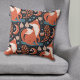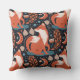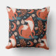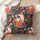 Ein roter Fuchs ist das Hauptmerkmal des Musters auf diesem markanten Kissen. Das Fuchsbild ist umgeben von Blume, Blätter, Symbolen und Monden im bohenhaften Stil. Die vorherrschenden Farben sind Zimtbraun, Schieferblau, Bräune und Marineblau. Beide Seiten haben das gleiche Bild.
