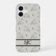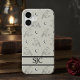 Elevate your everyday tech with this sophisticated Dark Academia phone case featuring a personalized monogram. The design showcases a geometric raven pattern paired with crescent moons and stars rendered in a clean monochrome neutral palette. It is a thoughtful custom birthday gift or a stylish treat for someone who loves mystical, minimalist aesthetics.
