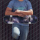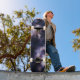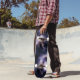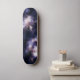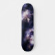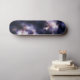 This skateboard design features a background of the galaxy / night sky in a mixture of dark and light purple.