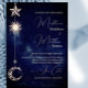 Der Goldmond am Himmel strahlt über den Wörtern auf einem blauen Hintergrund. Ein modernes Motto für einen himmlischen Abend. Ändern Sie einfach die Informationen für Ihr eigenes, individuelles Design. Ändern Sie einfach die Informationen für Ihre eigene Hochzeit stationär. Von einer Reihe passender Hochzeitstile aus Chessie's Fine Designs.