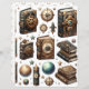 Doppelseitiges Scrapbook-Papier mit himmlischen Steampunk-Schnitten und Collage Cardstock-Designs mit Büchern und Ephemerien und passenden Hintergründen, um Ihnen bei der Papierherstellung zu helfen. Perfekt für alle Arten von Paperskraft von Scrapbooking und Junk Journaling bis hin zu Decopage und Collage.
