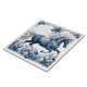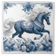 Ein himmlisches Steed, gefangen in der Mitte, strahlt floralen Glanz auf dieser Keramik Kachel aus. Detaillierte Blumenmotive, die an blühende Blüten erinnern, schmücken den Körper des Pferdes, fließende Mähne und Schwanz und spiegeln die Designs auf seinem dekorativen Sattel oder Gurtzeug wider. Der Künstler stellt geschickt die kraftvollen Muskeln und die Bewegung der Flüssigkeit des Tieres dar. Ein Rahmen von aufwändigen Blumendesigns in derselben tiefblauen Farbe umrahmt das Kunstwerk. Die ausgewogene Zusammensetzung und eine leicht erhöhte Perspektive unterstreichen die dynamische Haltung des Pferdes. Farblich und sanft beleuchtet, schaffen eine Vintage und ruhige Atmosphäre, die sich durch das klassische Fliesendesign auszeichnet. Dieses kunstvoll ausgeschmückte Stück zeigt klassische Schönheit und Kunst.