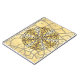 Eine lace-like mandala in dunkelblau mit leuchtend blauen und goldenen Sternen und einem hellen sonnenburst Gradienten Kreis dahinter sorgt für einen Spaß, Design, das an einen Nachthimmel und sonnigen Tag mit einem Bild erinnert.