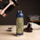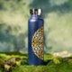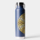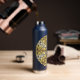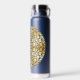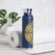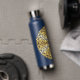 Ein spitzenähnlicher, zentristischer Zirkel Mandala in dunkelblau mit leuchtend blauen und goldfarbenen sternähnlichen Punkten, die zwischen den Schichten verstreut sind, und ein heller Sonnenaufgang-Gradientenkreis dahinter sorgen für ein lustiges Design, das an einen Sternenhimmel erinnert und an einen hellen Sonnentag mit einem Bild.