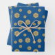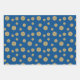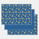 Ein spitzenähnlicher, zentristischer Zirkel Mandala in dunkelblau mit leuchtend blauen und goldfarbenen sternähnlichen Punkten, die zwischen den Schichten verstreut sind, und ein heller Sonnenaufgang-Gradientenkreis dahinter sorgen für ein lustiges Design, das an einen Sternenhimmel erinnert und an einen hellen Sonnentag mit einem Bild. Zwei Blätter in diesem Set zeigen die Mandala verstreut über einen reichen blauen Hintergrund, während das dritte Blatt ein Muster verblasster Polka Punkte auf dem gleichen blauen Hintergrund zeigt, um Ihnen Optionen und Abwechslung für Ihre Geschenkverpackung oder DIY-Projekte.