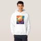 The Celestial Sunset T-Shirt Hoodie blends the casual ease of a tee with the added edge of a hood—featuring a glowing, planet-like sphere surrounded by vibrant beams of orange, yellow, purple, and blue. This abstract, space-inspired design makes it the perfect choice for cool evenings, creative days, or whenever you want to wear the universe on your back. Soft, stylish, and full of personality.