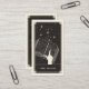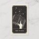 Diese Visitenkarte ist im Stil einer Tarot-Karte in einer Schwarz-Creme-Farbpalette gestaltet. Die Abbildung zeigt eine Hand, die in einem Textbuch mit Sternen zeigt und einen Mond aus dem Buch strömt. Dies wäre perfekt für jeden Tutor oder Lehrer, der eine alternative Visitenkarte bevorzugt und will, seine Visitenkarte unvergesslich zu machen.
