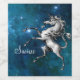 Wunderschönes Vintag heraltrockenes Einhorn-Illustrations-Set auf Himmelshöhle Hintergrund. Anpassen mit Namen oder anderen Texten im weißen Skript-Schriftart.
