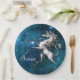 Wunderschönes Vintag heraltrockenes Einhorn-Illustrations-Set auf Himmelshöhle Hintergrund. Anpassen mit Namen oder anderen Texten im weißen Skript-Schriftart.