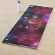 Einzigartige kosmische Yoga Mat mit goldenen Imitaten Glitzer-Effekt-Elemente des Universums suspendiert von auf einem sternbewachsenen burgundischen Hintergrund. Eleganter Schriftart Typografie Monogramm Name ist leicht zu personalisieren mit eigenen. Sei mit den Himmeln eins, während du dich entspannst und auf dieser schönen Matte meditierst.