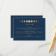 Fügen Sie Ihrer Veranstaltung mit unserer Celestial Wedding Enclosure Card eine Touch kosmischer Eleganz hinzu. Tauchen Sie ein in die bezaubernde Einfachheit unseres Designs und reflektieren Sie die faszinierende Magie der Himmelskörper. Unser trendiges, aber zeitloses Design zeigt eine Reihe von Mondphasen, die in Gold auf einer beeindruckenden marineblauen Kulisse dargestellt werden. Diese Touch von Gold verleiht dem coolen dunkelblauen Sockel ein warmes und zauberhaftes Ambiente, das den einladenden Reiz des Stückes noch verstärkt. Das Design ist minimalistisch gehalten, sodass die himmlischen Elemente wirklich glänzen. Sie können ganz einfach auf Ihre Bedürfnisse zugeschnitten werden, um sicherzustellen, dass jedes Stück Ihren eigenen Stil widerspiegelt.