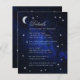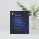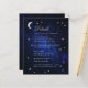 Eine preiswerte Hochzeitskarte für ein himmlisches Hochzeitsthema, mit dem Mond und Stern auf einem sternenblauen Hintergrund. Der Titel Details (der geändert werden kann) wird in einem eleganten kalligrafischen Skript geschrieben. Der Mond und die Sterne sind Silberfolie, der Text ist hellgrau, fast weiß. Auf dem schwarzen, gibt es nur den Mond und Stern auf einem sternblauen Hintergrund. Das Foto der Sternennacht ist von Felix Mittermeier aus Pixabay und ist für kommerzielle Nutzung kostenlos.