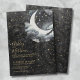 Unter den Sternen Crescent Moon Celestial Wedding Einladung. Feiern Sie einen Abend unter dem Sternenhimmel mit diesem düsteren Himmelstheater. Ein eleganter und dennoch spielerischer Look mit schwarzer Aquarellfarbe mitten in der Nacht, Sternen und Mond, umgeben von einem bewölkten Himmel. Schwarz, Weiß, Gold und Grau färben sich insgesamt. Ein eleganter Mix aus Schrifttyp und Serif-Schriftart in Goldfarben (nicht Gold). Sie werden einen mystischen Abend unter diesem Halbmondhimmel haben. Erhältlich als gedruckte Einladung oder als digitale Einladung zum Herunterladen, dass Sie E-Mail senden können oder vor Ort gedruckt haben!