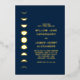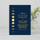Fügen Sie Ihrer Veranstaltung eine Touch kosmischer Eleganz mit unserer Celestial Wedding Foil Einladung hinzu. Tauchen Sie ein in die bezaubernde Einfachheit unseres Designs und reflektieren Sie die faszinierende Magie der Himmelskörper. Unser trendiges, aber zeitloses Design zeigt eine Reihe von Mondphasen, die künstlerisch in realer Goldfolie auf einer markanten marineblauen Kulisse dargestellt werden. Diese Touch von Gold verleiht dem coolen dunkelblauen Sockel ein warmes und zauberhaftes Ambiente, das den einladenden Reiz des Stückes noch verstärkt. Das Design ist minimalistisch gehalten, sodass die himmlischen Elemente wirklich glänzen. Sie können ganz einfach auf Ihre Bedürfnisse zugeschnitten werden, um sicherzustellen, dass jedes Stück Ihren eigenen Stil widerspiegelt.
